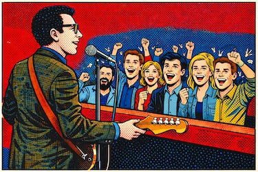 And Costello had a distinct stage persona, invoking the late Buddy Holly’s thick glasses and smart suits. And it wasn’t just for show: he adopted the oldies’ penchant for economical song lengths and Farfisa organs. Indeed, he borrowed heavily from the entire early rock playbook.